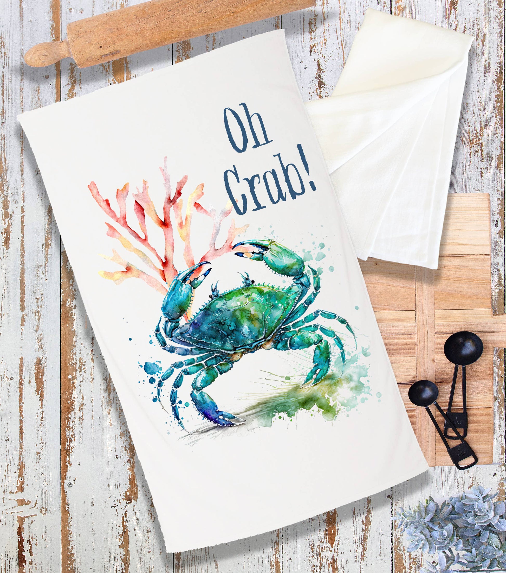 Coastal Beach Oh Crab Blue Crab Terry Cloth Towel