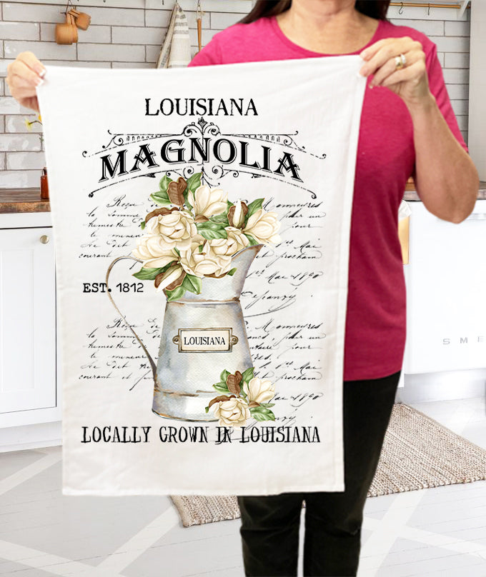 Louisana State Flower Magnolia Cotton Terry Towel
