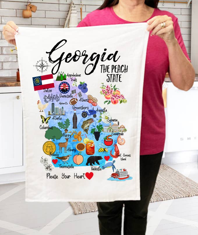Georgia State Map Souvenir Kitchen Terry Cloth Towels