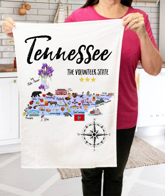 Tennessee State Map Souvenir Kitchen Terry Cloth Towels