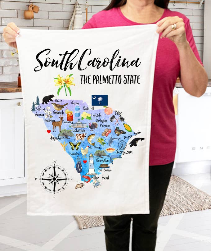 South Carolina State Map Souvenir Kitchen Terry Cloth Towel