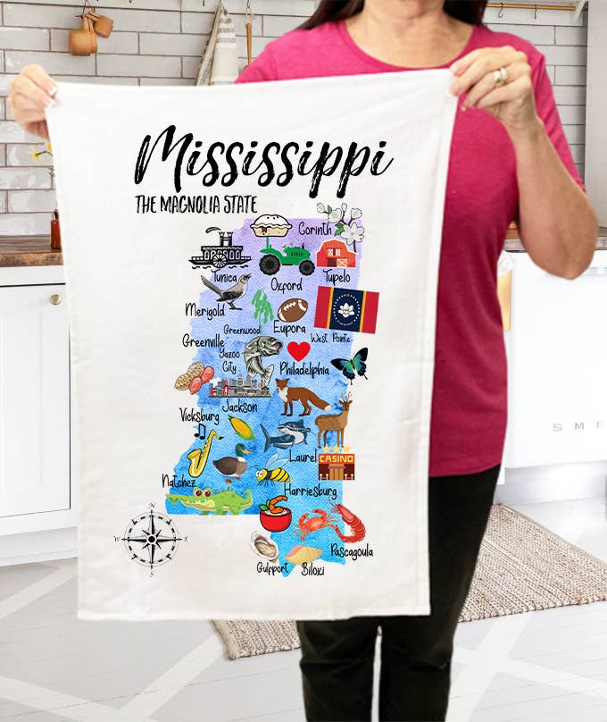 Mississippi State Map Souvenir Kitchen Terry Cloth Towel