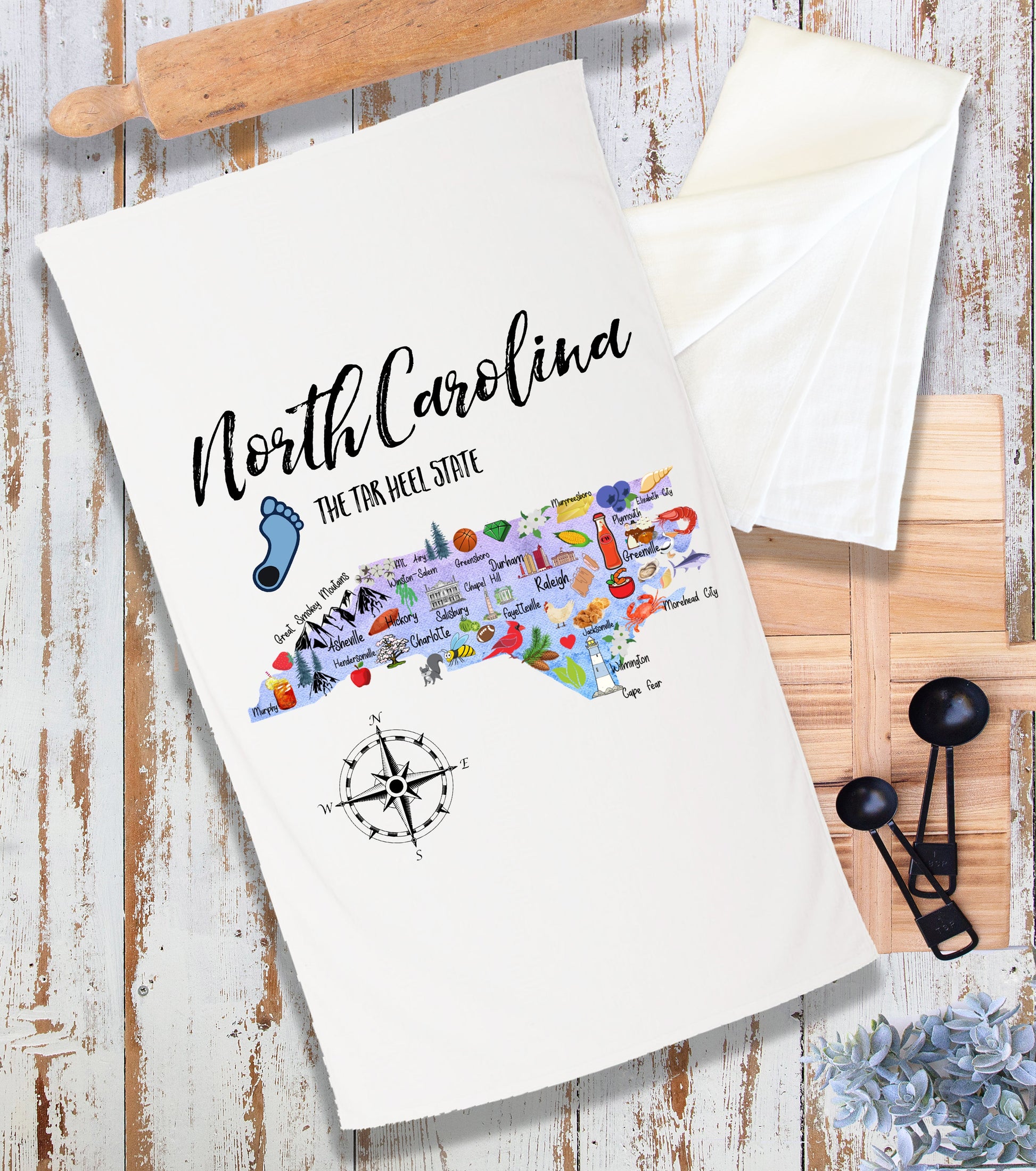 North Carolina State Map Souvenir Kitchen Terry Cloth Towel