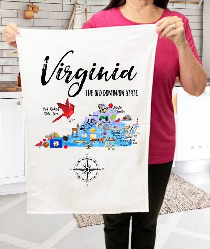 Virginia State Map Souvenir Kitchen Terry Cloth Towel