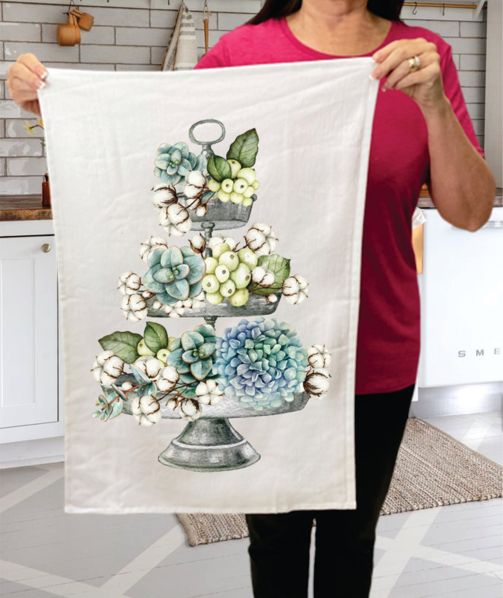 Country Succulent Cotton 3 Tier Tray Cotton Terry Towels