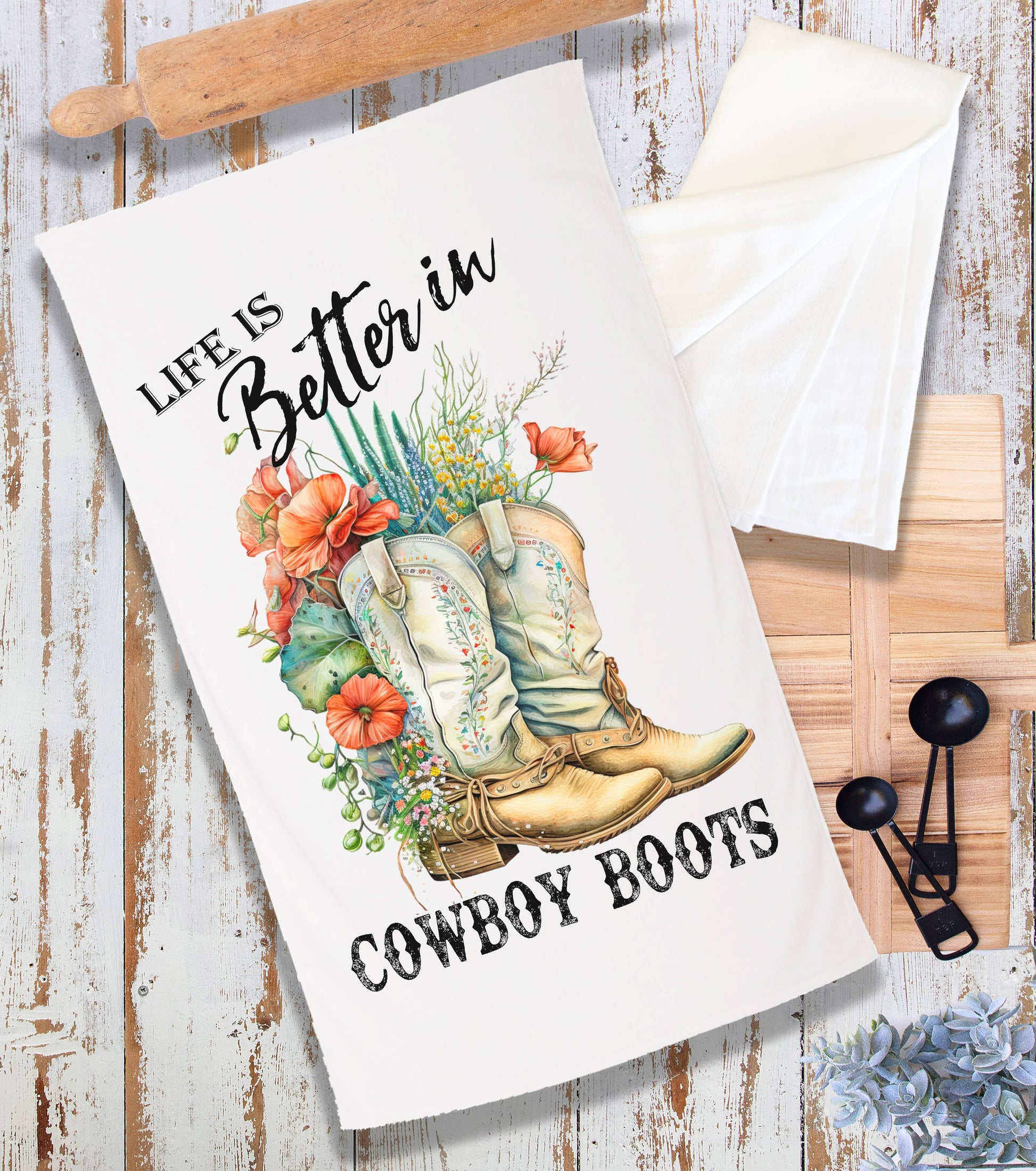 Life is Better In Cowboy Boots Western Terry Cloth Towel