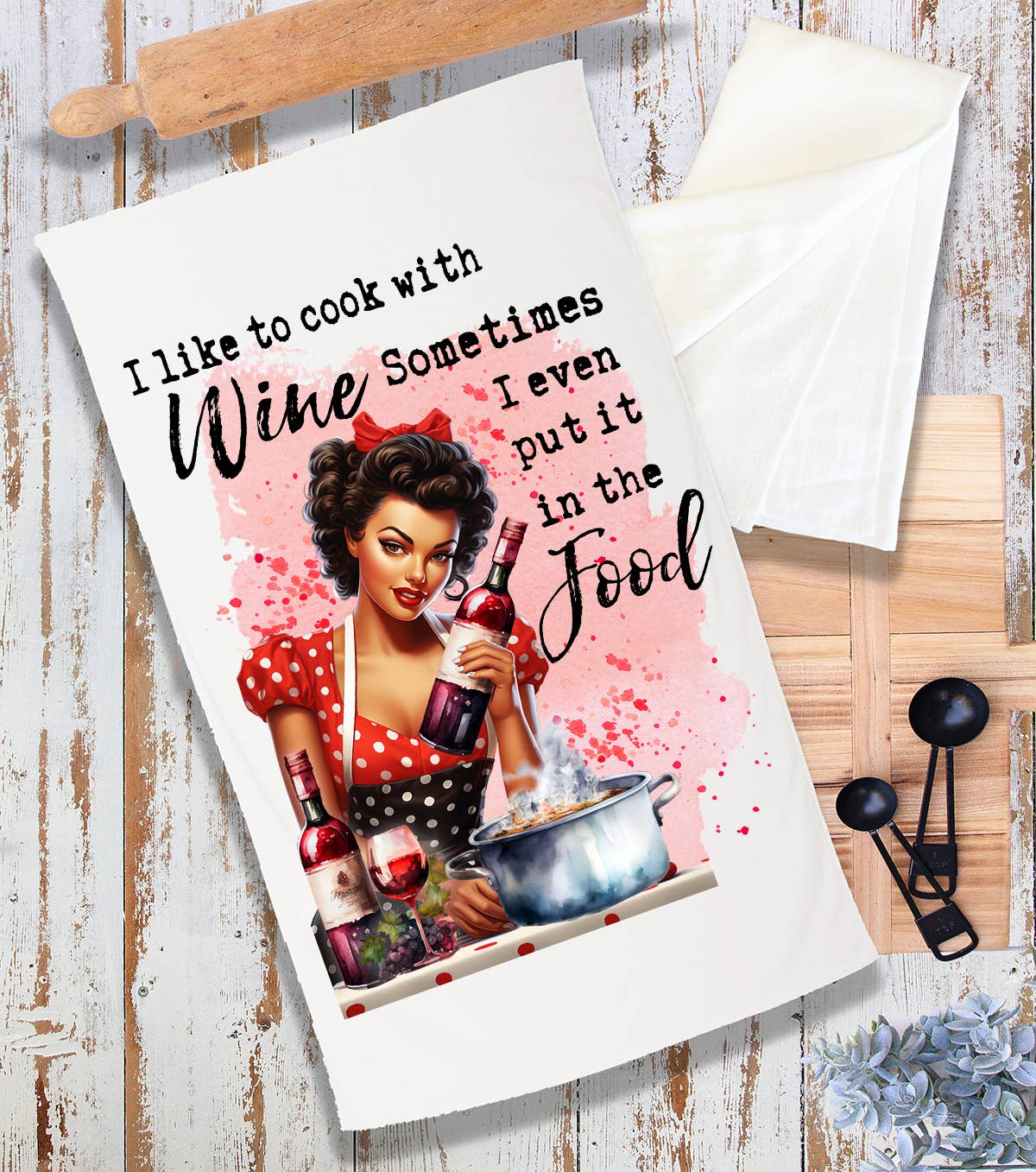 I Cook with Wine Funny Sassy Saying Terry Cloth Towel