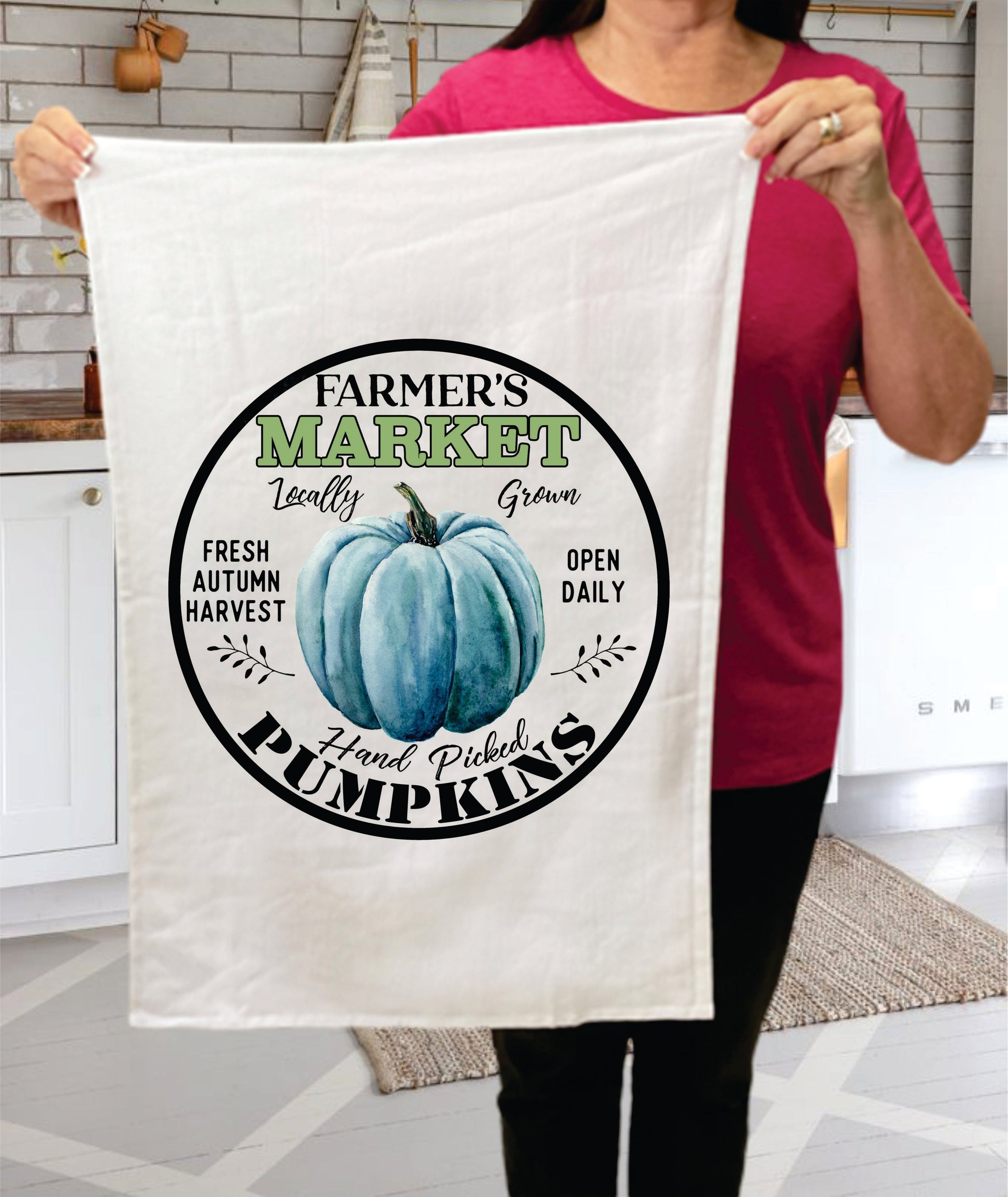Farmers Market Hand Picked Blue Pumpkins Cotton Terry Towels
