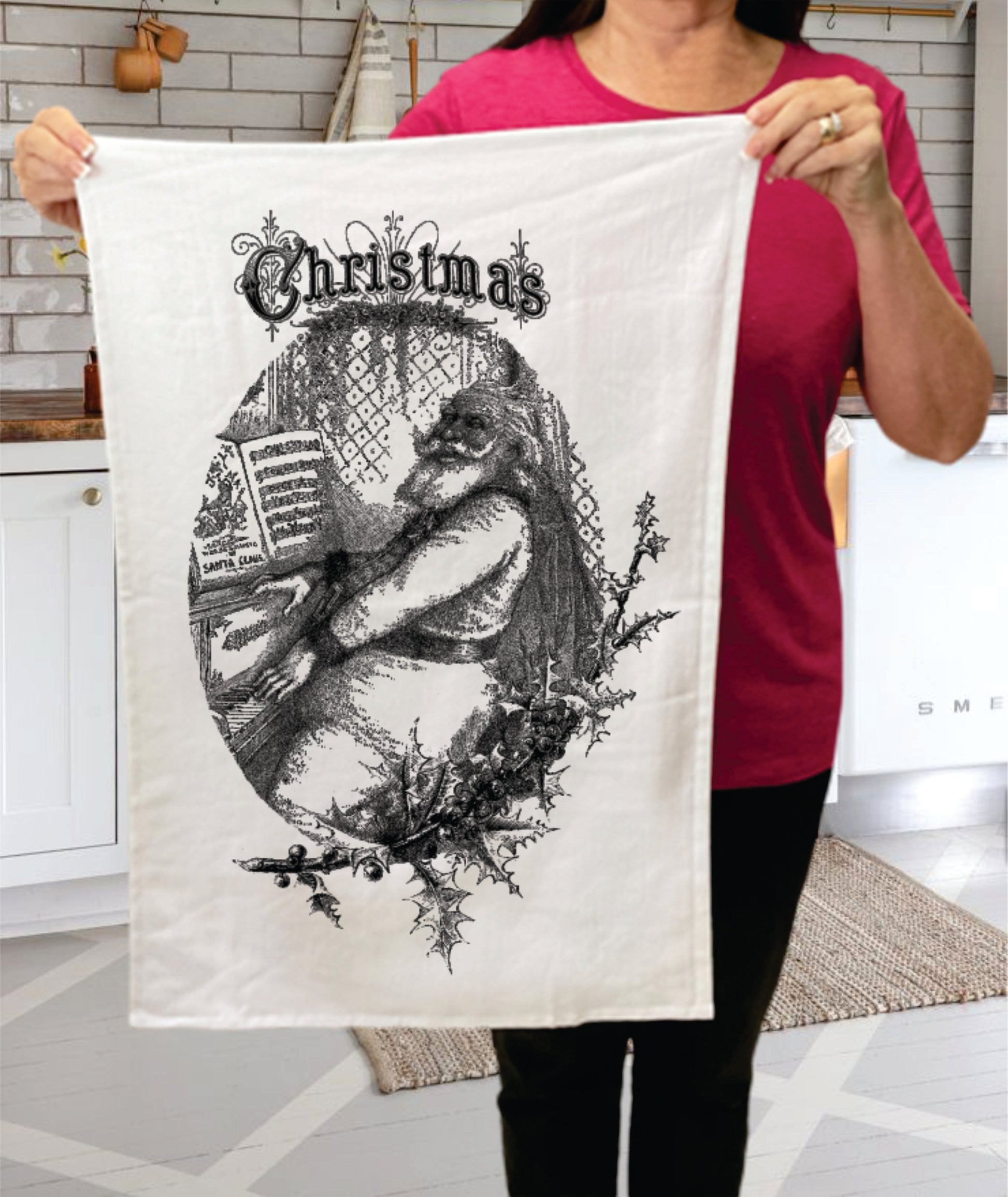 Christmas Santa Piano Antique, Cotton Terry Towels