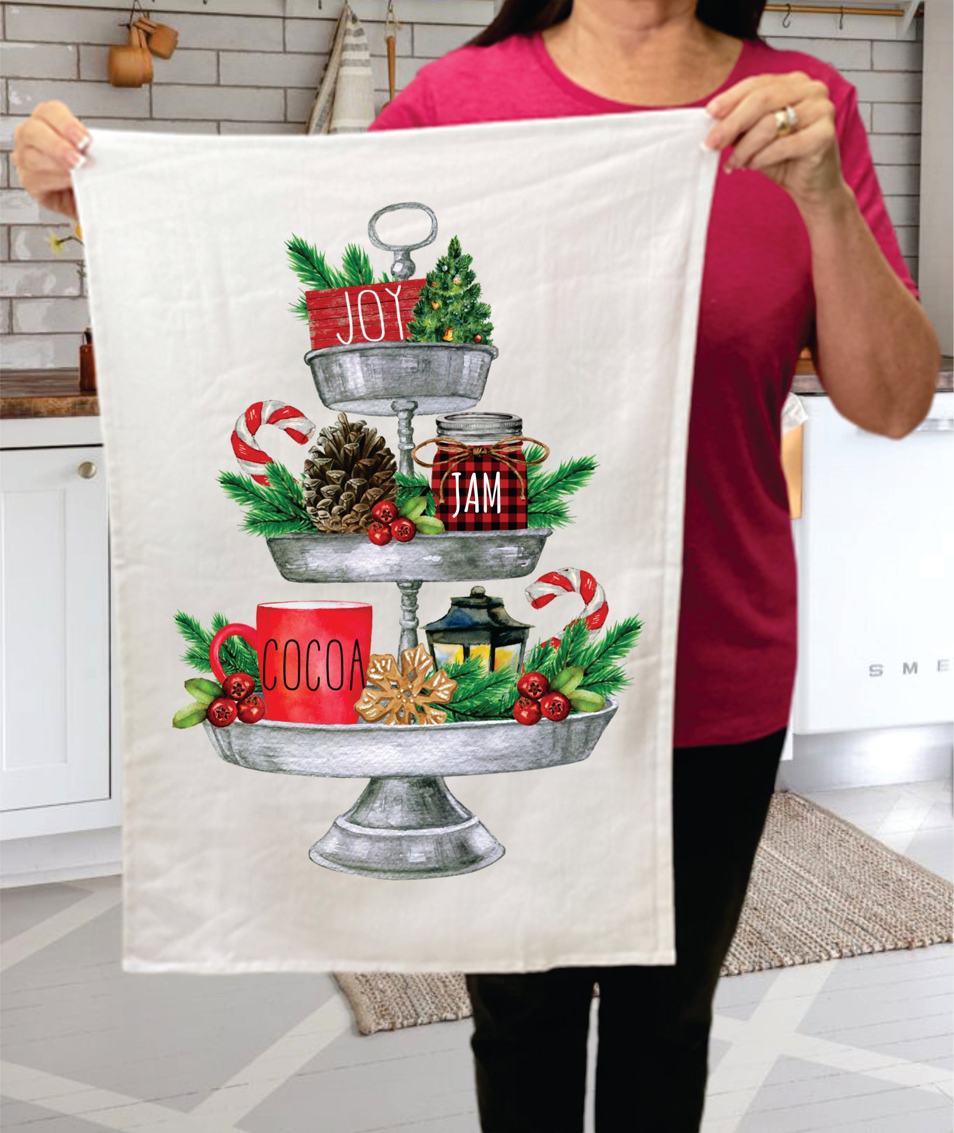 Farmhouse Christmas 3 Tier Tray Cotton Terry Towels