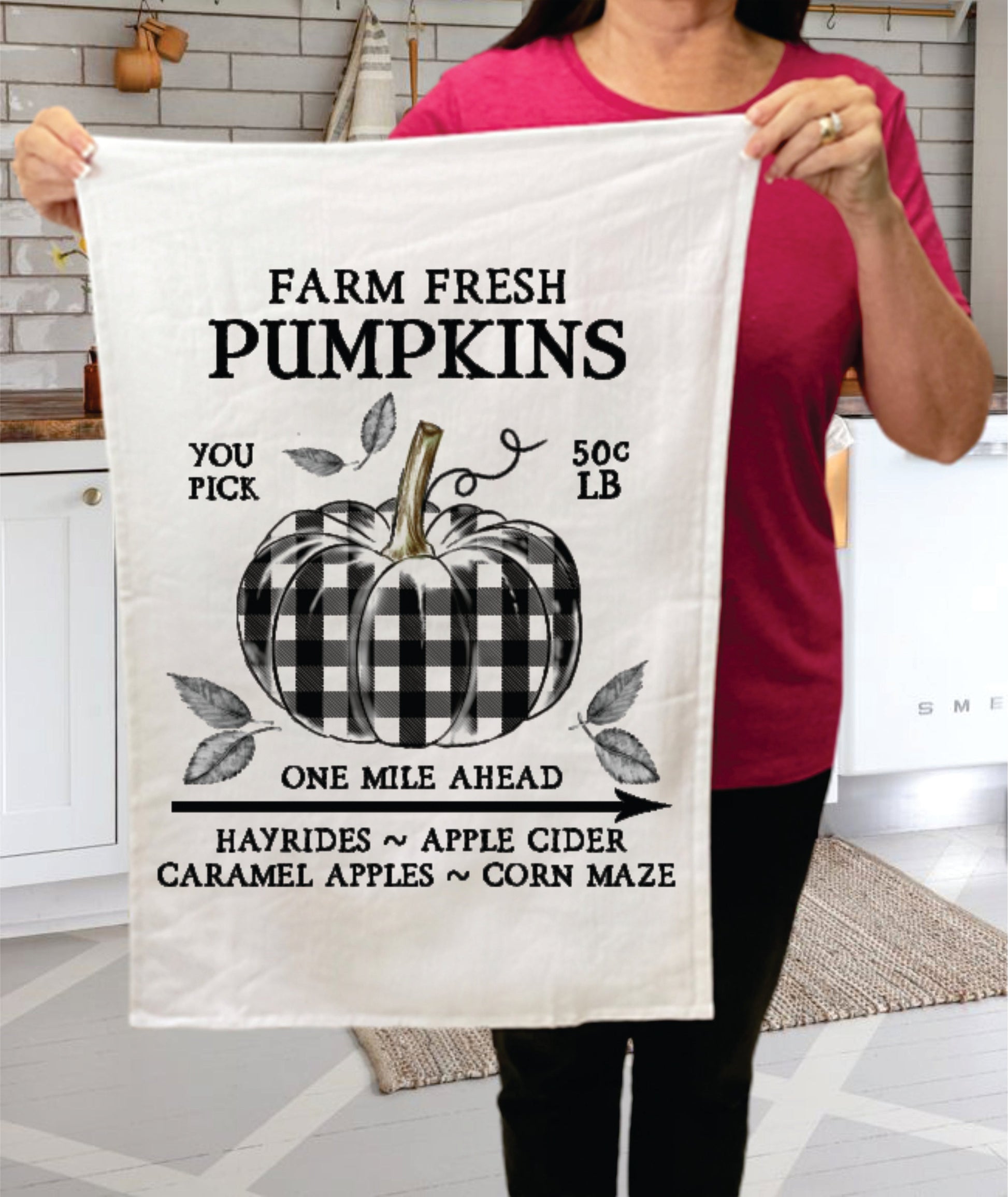 Fall Autumn Farm Plaid Pumpkin Cotton Terry Towels
