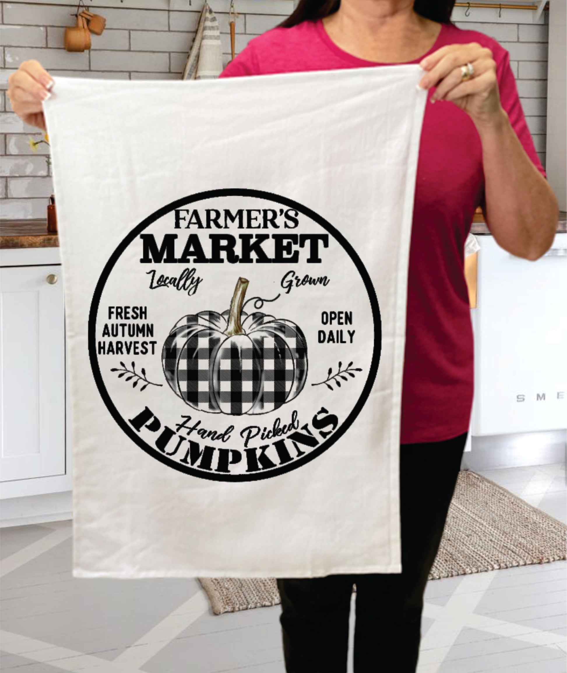 Fall Autumn Farmer Plaid Pumpkin Cotton Terry Towels