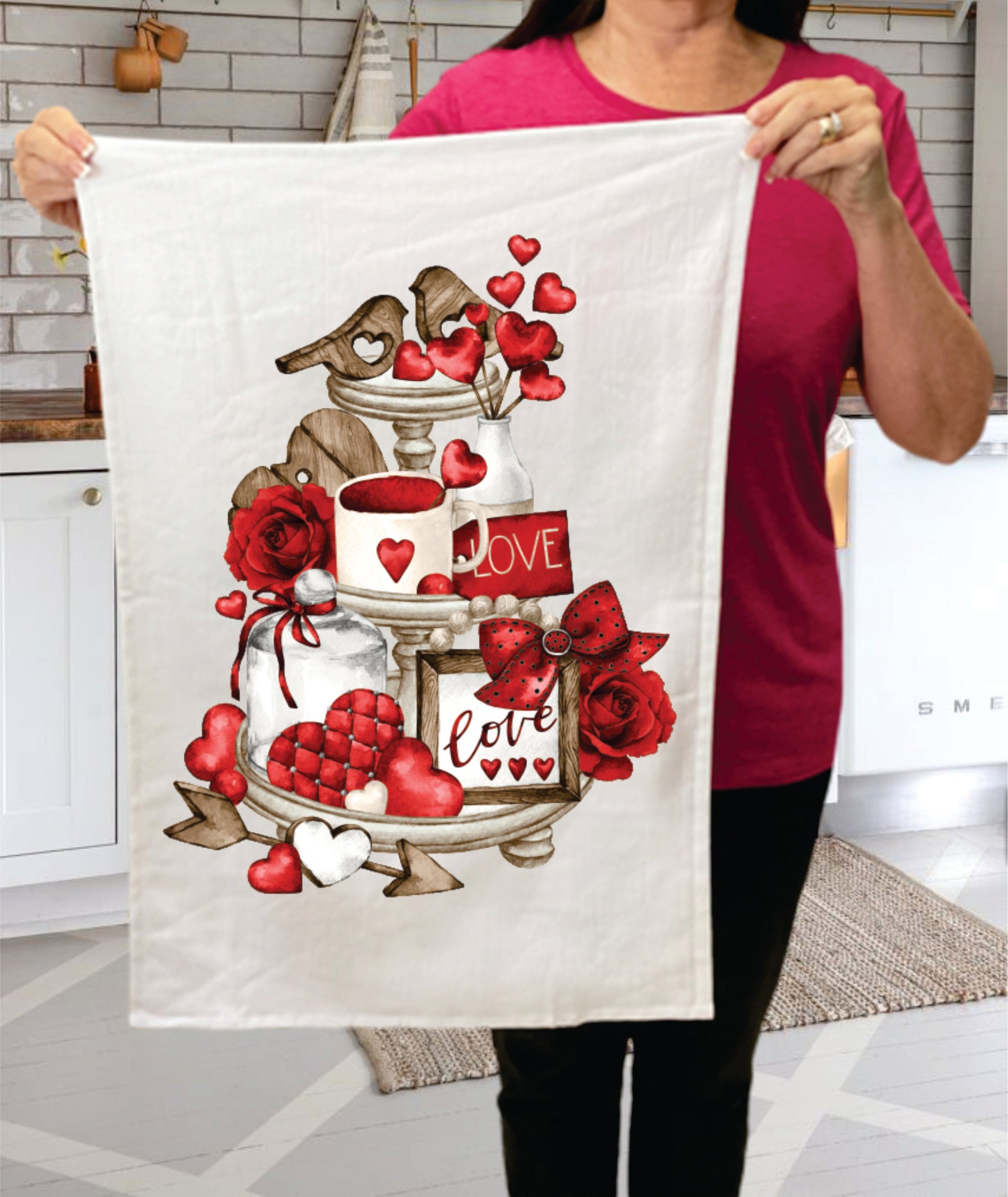 Valentine Red Heart 3 Tier Tray Cotton Terry Towels