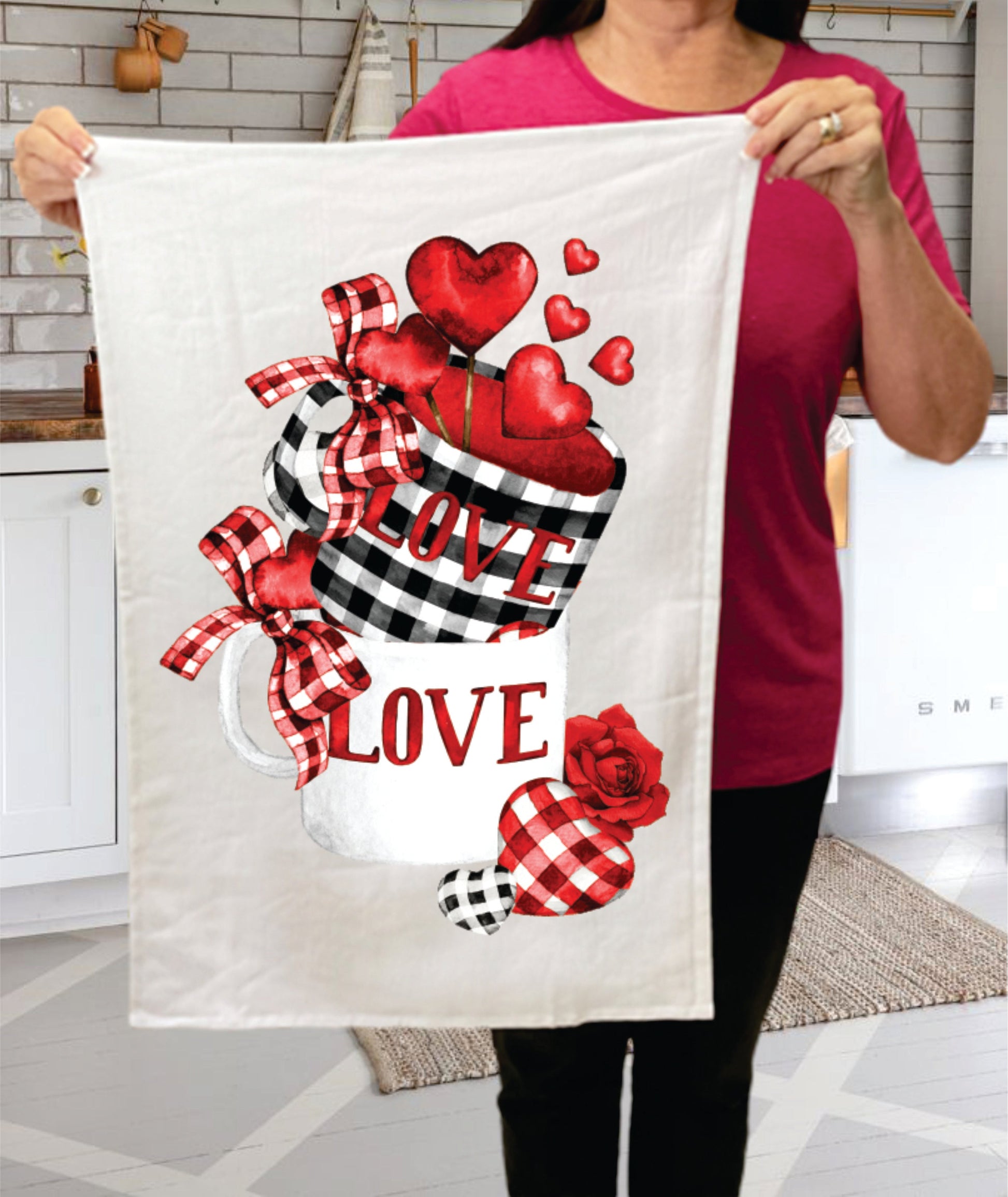 Valentine Love Red Hearts Coffee Cotton Terry Towel