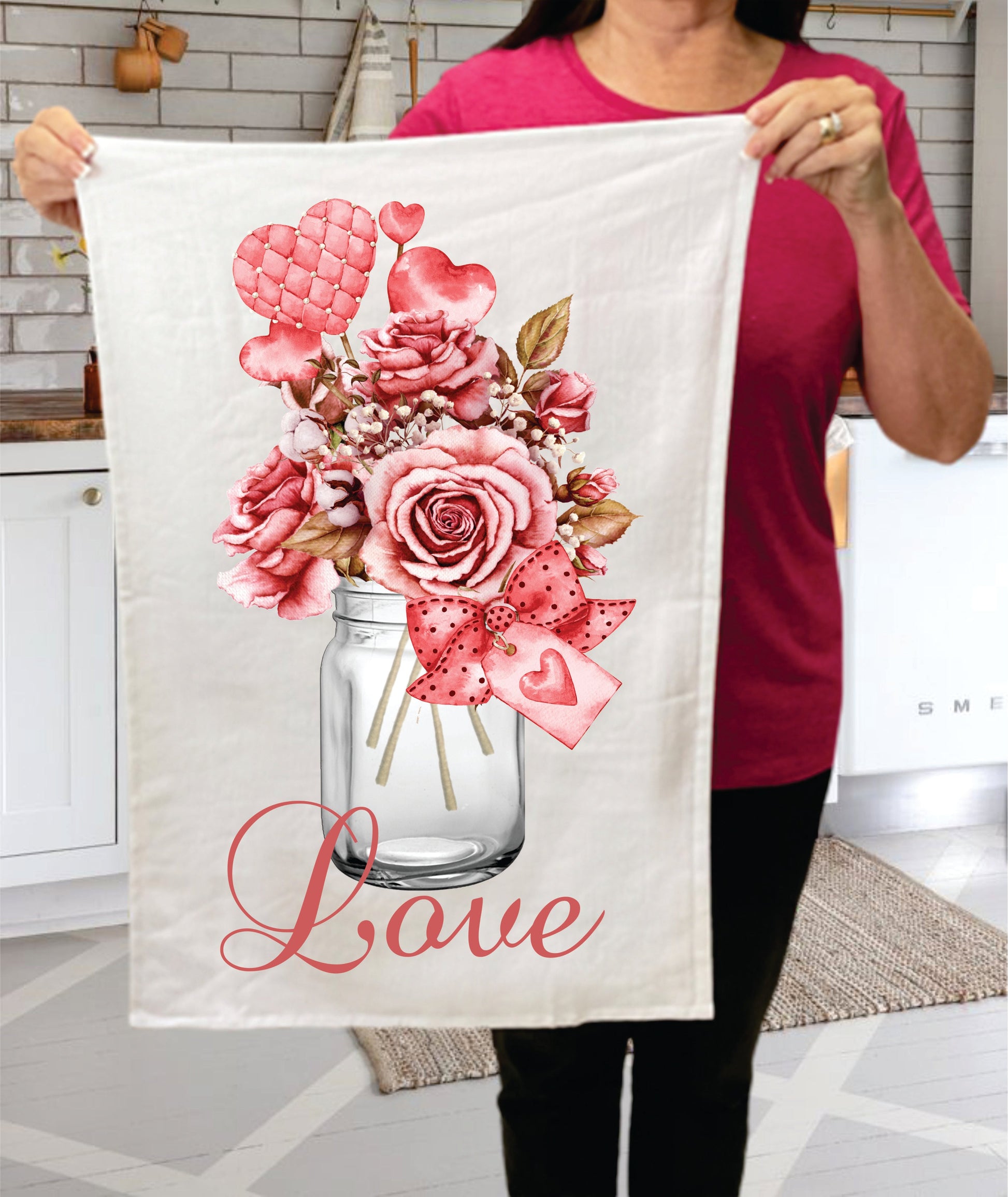 Valentine Love Mason Jar Roses Cotton Terry Towels