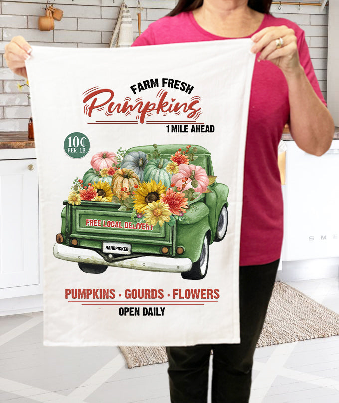 Fall Autumn Farm Fresh Pumpkins Pick Up Truck Terry Towel