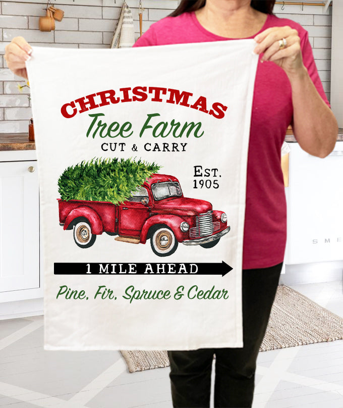 Christmas Trees Farm Red Pick Up Truck Terry Towel