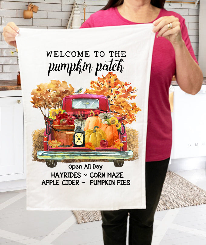 Fall Autumn Pumpkin Pick Up Truck Kitchen Terry Towel
