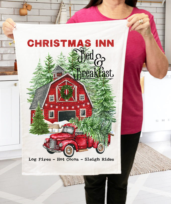 Christmas Inn Red Barn Pick Up Truck Kitchen Terry Towel