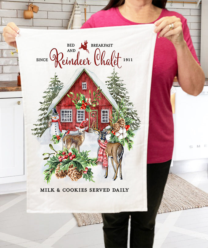 Christmas Reindeer Chalet Cotton Terry Cloth Towels