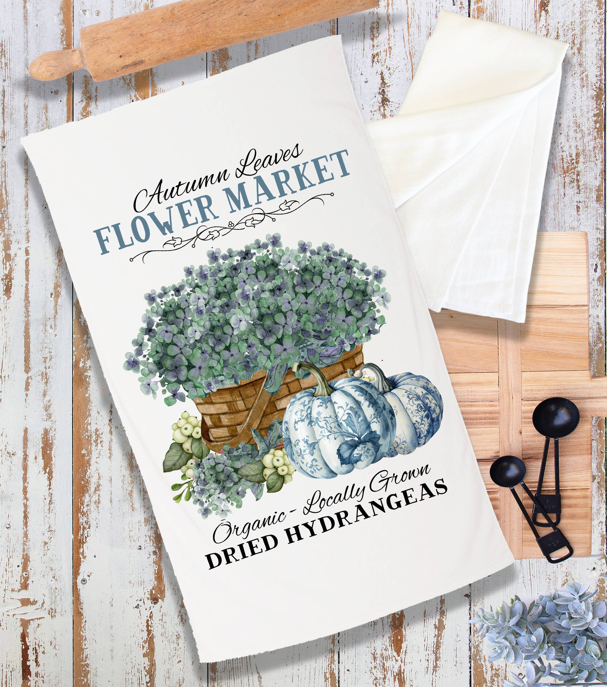 Autumn Blue White Pumpkins Hydrengeas Terry Cloth Towel