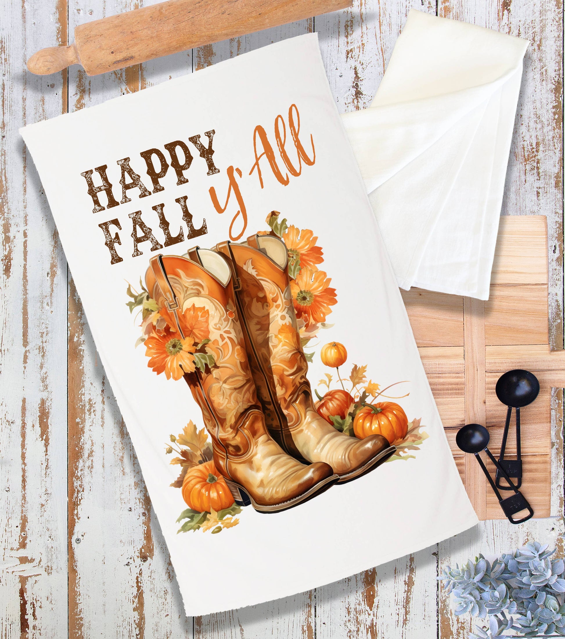 Happy Fall Y'All Cowboy Boots Western Terry Cloth Towel