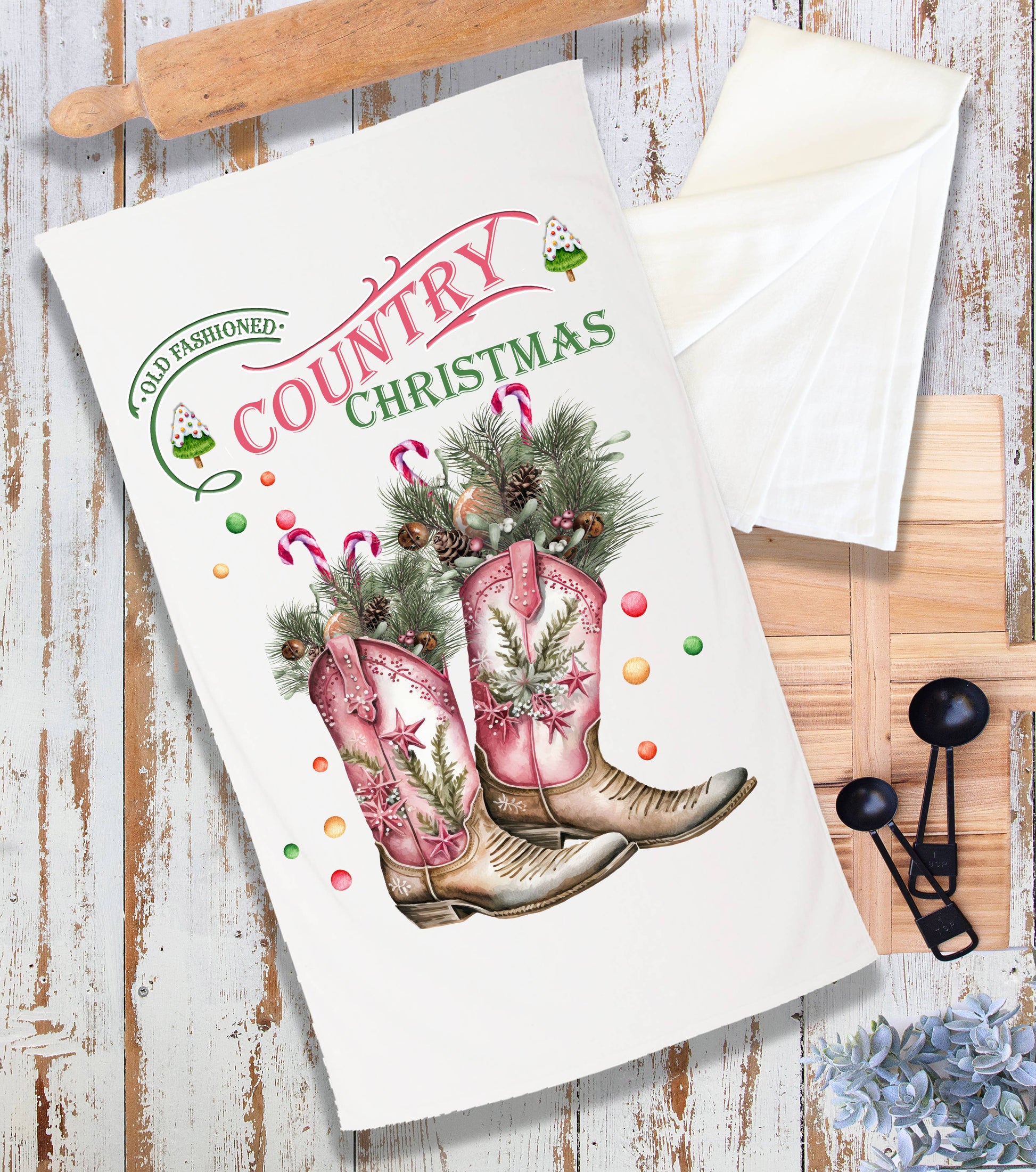 Country Christmas Cowboy Boots Western Terry Cloth Towel