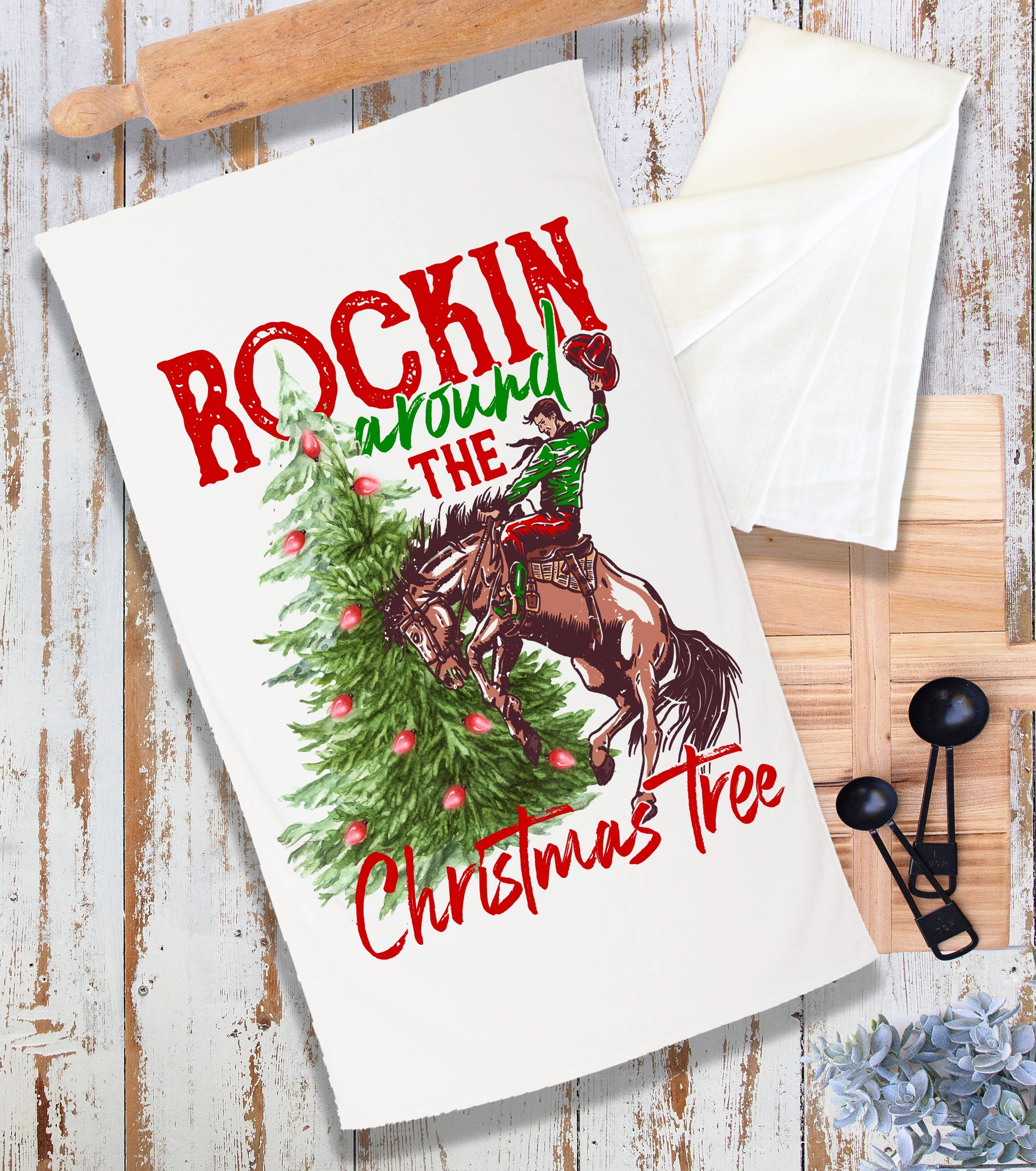 Rockin Around Christmas Tree Western Terry Cloth Towel