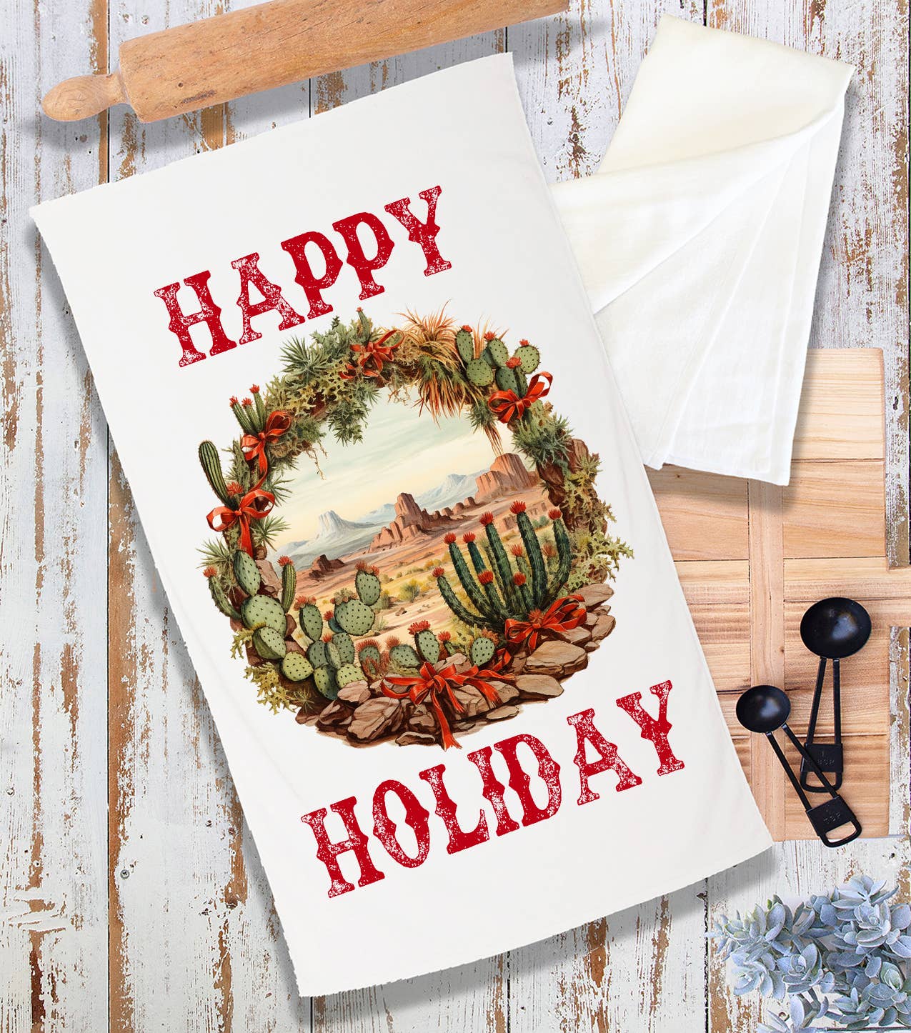 Christmas Cactus Happy Holiday Terry Towel