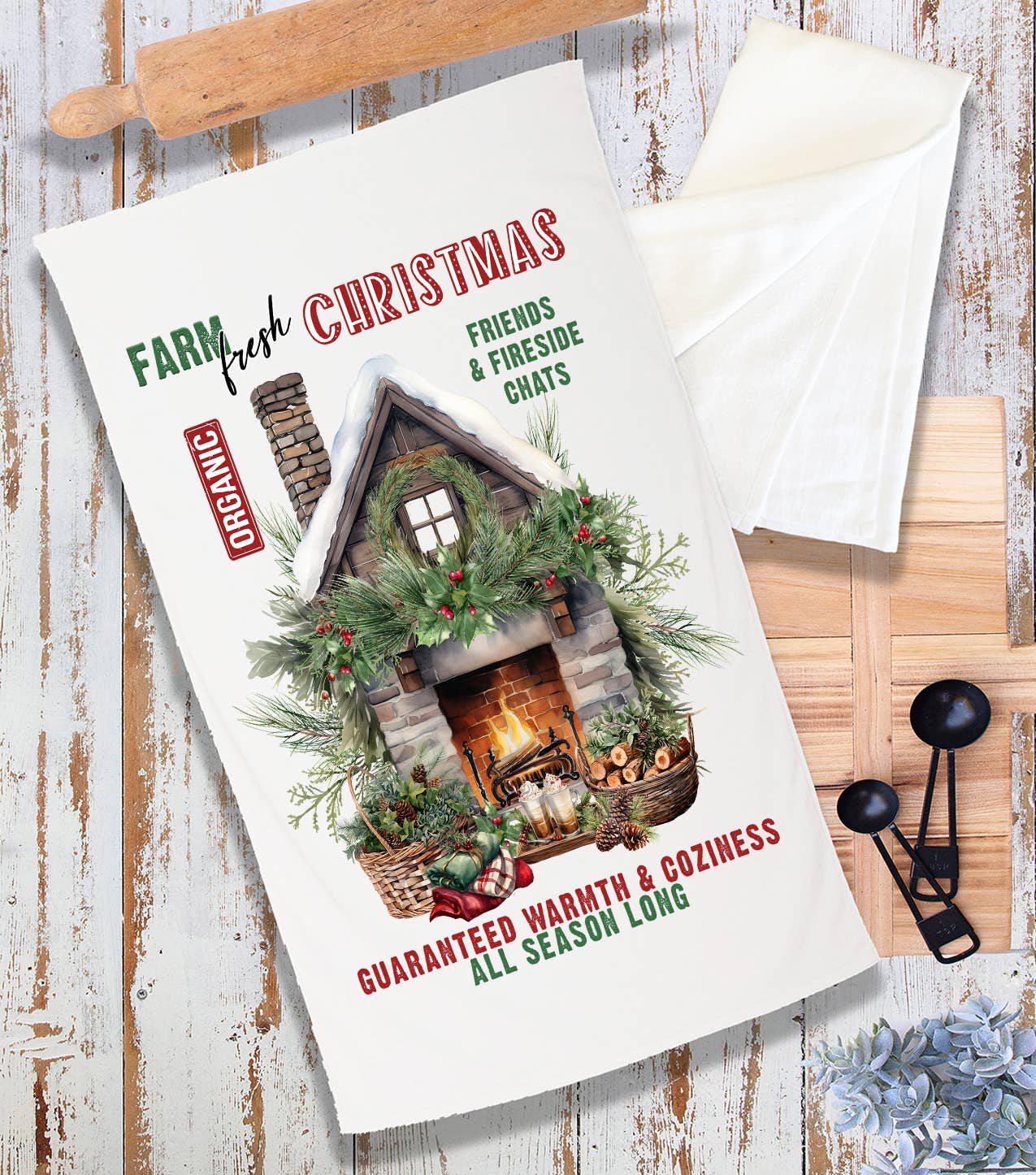 Farm Fresh Christmas Fireplace Terry Towel