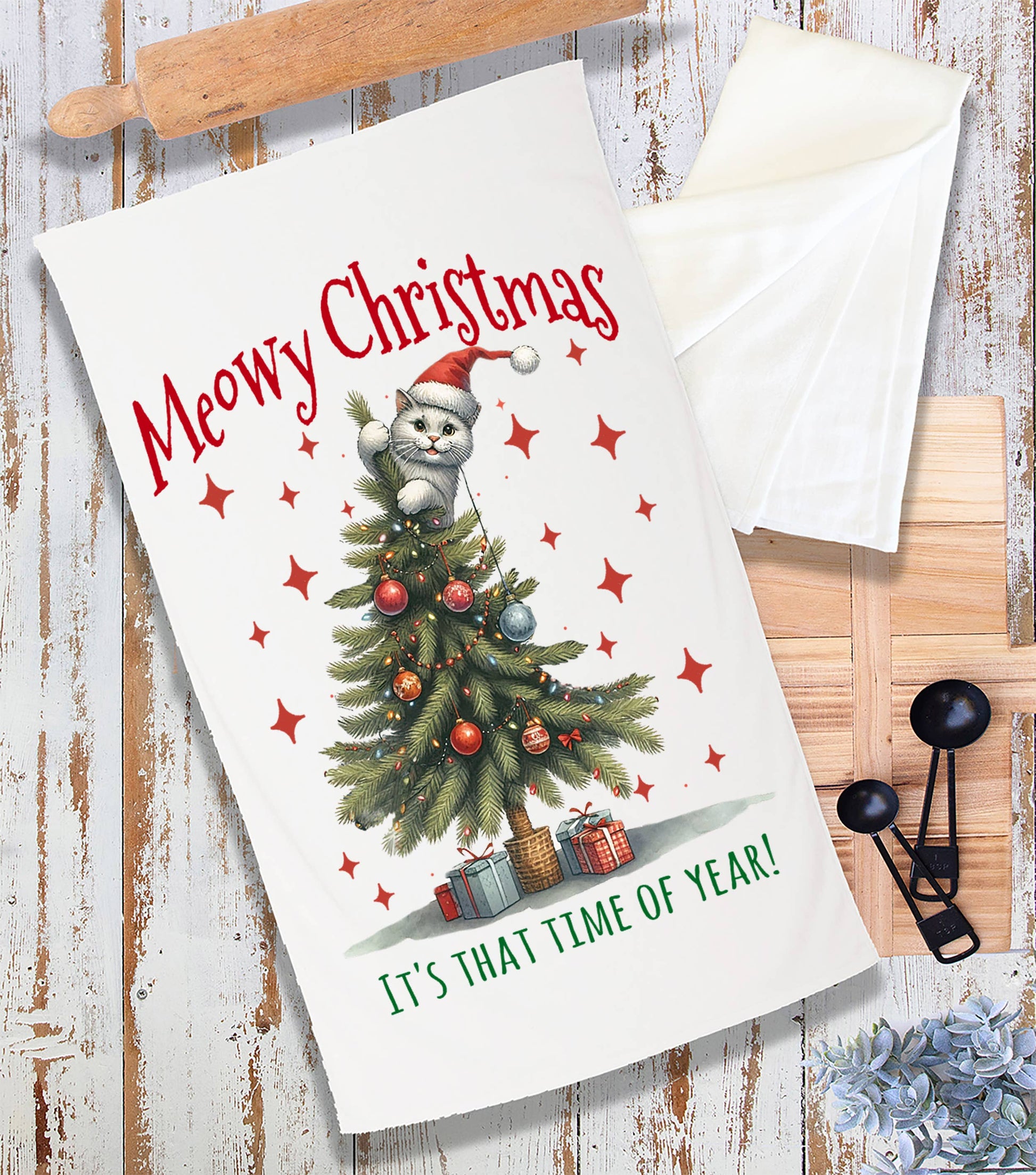 Meowy Christmas Cat Attaching Tree Terry Towel